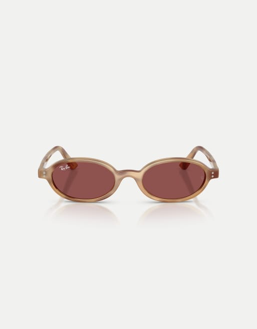 Ray-Ban Khal oval sunglasses with violet lens in cream havana