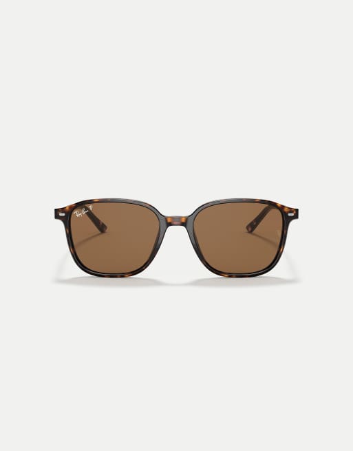 Ray-Ban Leonard square polarised sunglasses with brown lens in tortoise