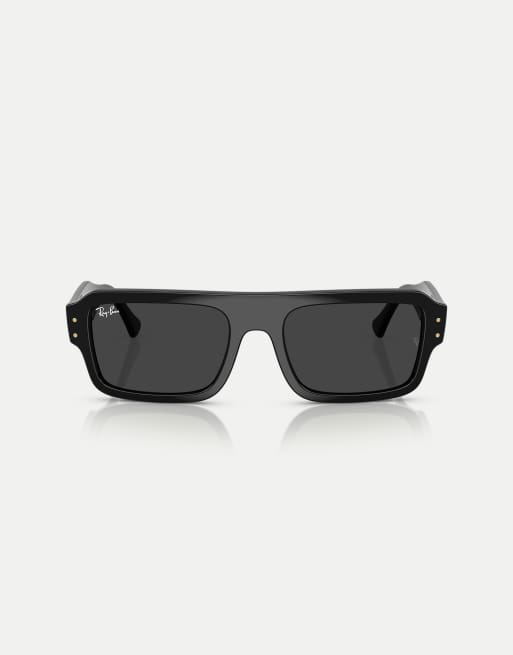 Ray-Ban Lukas rectangle polarised sunglasses with black lens in black