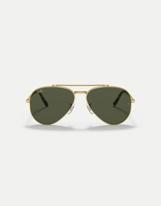 Ray-Ban New aviator pilot sunglasses with green lens in gold