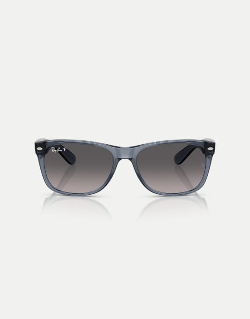 Ray-Ban New wayfarer square polarised sunglasses with grey lens in transparent dark blue