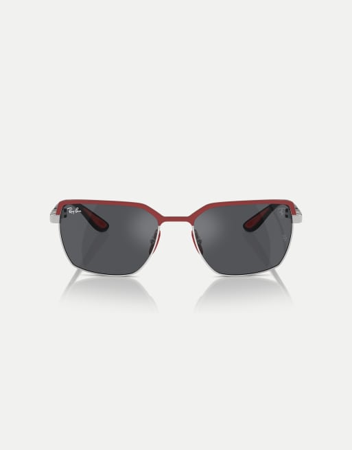 Ray-Ban Rb3743m scuderia ferrari collection square sunglasses with grey lens in red on gunmetal