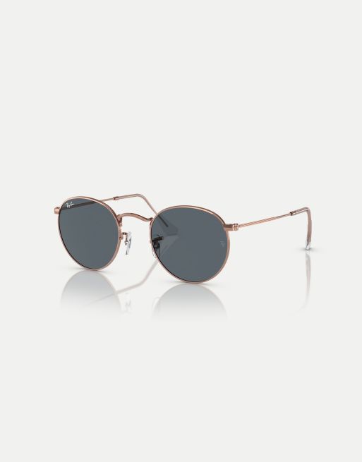 Ray-Ban round metal rose gold round sunglasses in gold with blue lens in rose gold