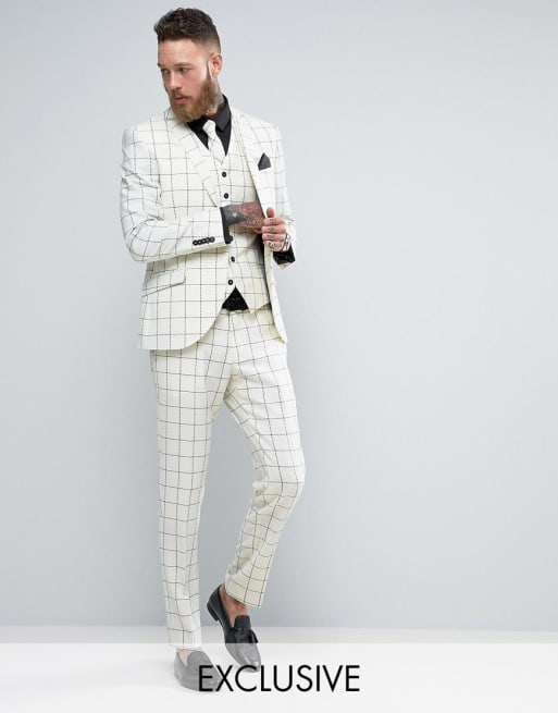 Heart & Dagger Skinny Suit In White Wool Tweed