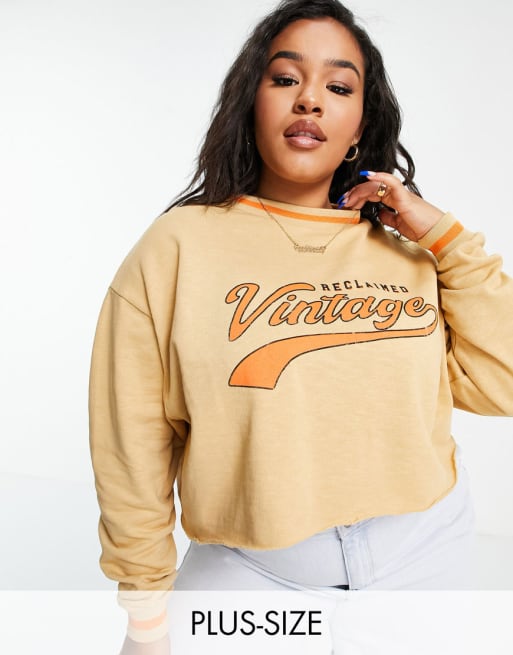Reclaimed Vintage inspired varsity logo sweat and joggers in tan co-ord