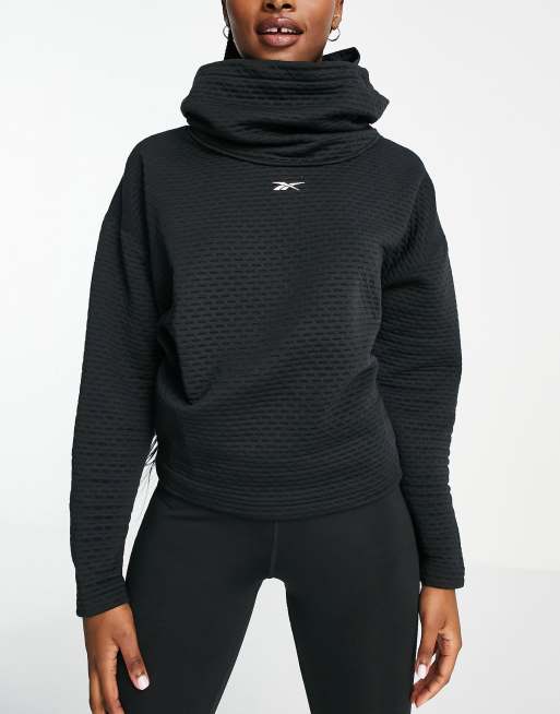 Reebok hoodie with neck detail in black