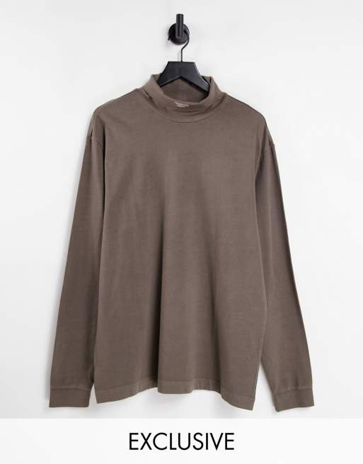 Reebok logo roll neck top in taupe brown - exclusive to ASOS