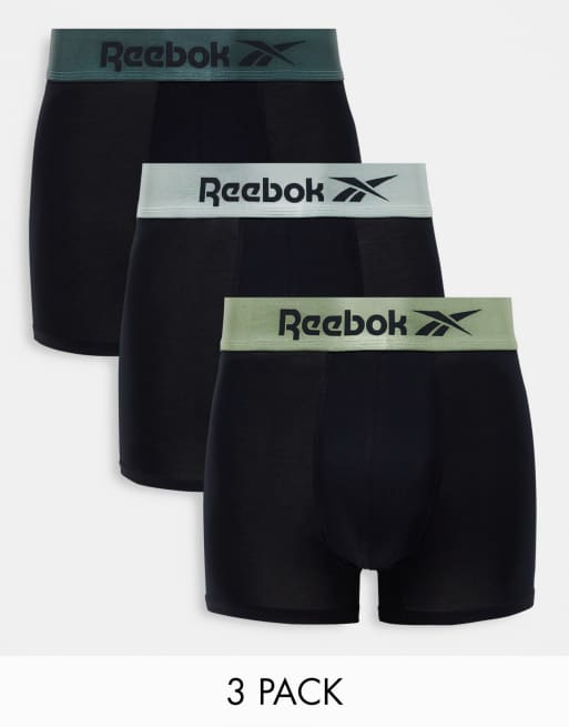 Reebok lorenzo 3 pack bamboo trunks in black with shine waistbands