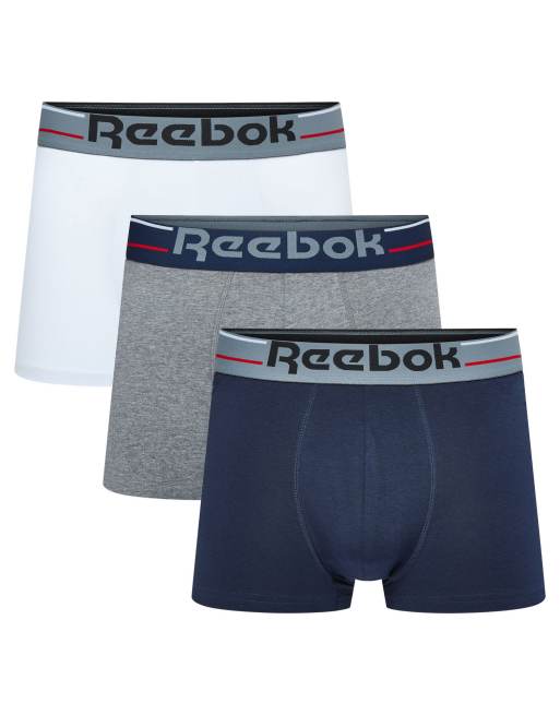 Reebok Mens reebok 3 pack michael trunks vector navy/grey marl/white in multi