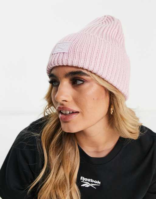 Reebok ribbed logo beanie in pastel pink