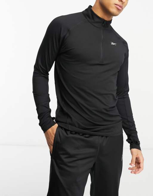 Reebok Running 1/4 zip long sleeve t-shirt in black