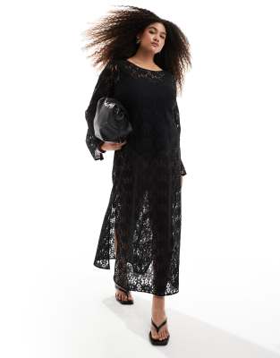Renee Studio Plus exclusive long sleeve lace maxi dress in black