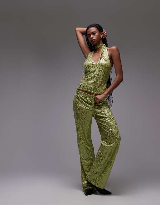 Resume relaxed smart trousers in glitter green sparkle co-ord