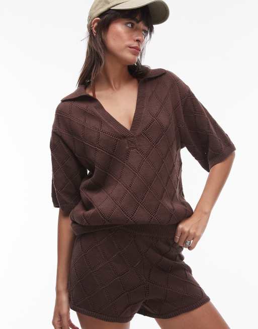 Rhythm islander collared knit beach shirt co-ord in dark brown