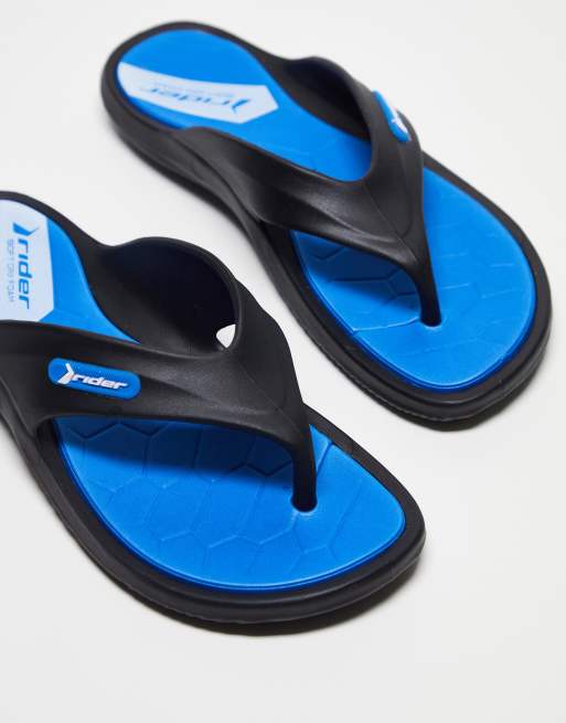 Rider cape flip flop sandals in black/blue