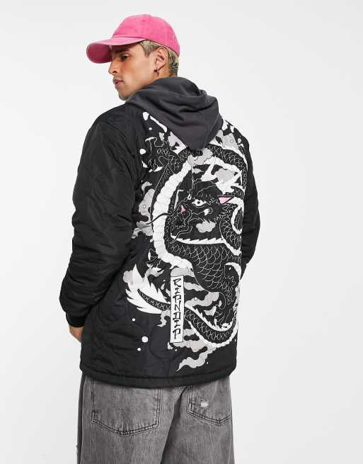 RIPNDIP mystic nerm quilted bomber jacket in black with sleeve and back print