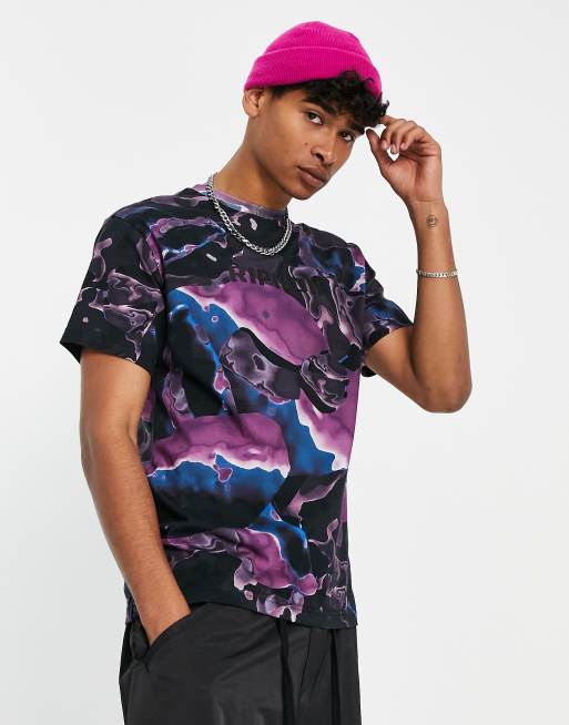 RIPNDIP ultralight beam t-shirt in black with all over art print and rubber logo