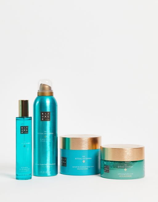 - Get ready for that zen feeling with relaxing products from Rituals. Inspired by Asian cultural traditions, the brand’s skincare and body-care range is big on natural ingredients. From shower gels, body scrubs and bath bombs to nourishing body moisturisers and face creams, our Rituals at ASOS edit is here to keep you pampered from morning ‘til night. For something more uplifting, its scented body mists and re-energising gift sets are well-being wonders.