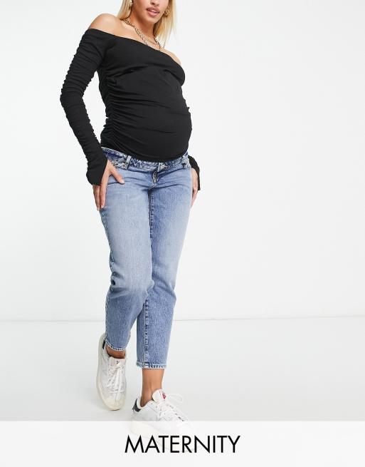 River Island Maternity overbump straight leg jeans in mid blue