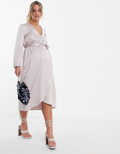 River Island Maternity satin wrap midi dress in grey