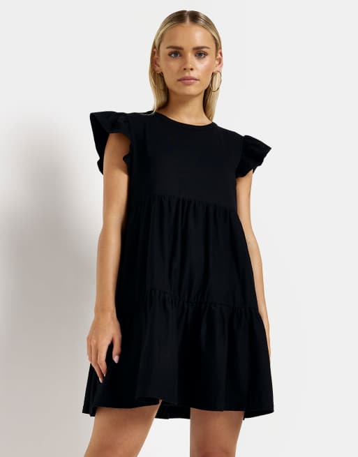 River Island frill tiered smock mini dress in black