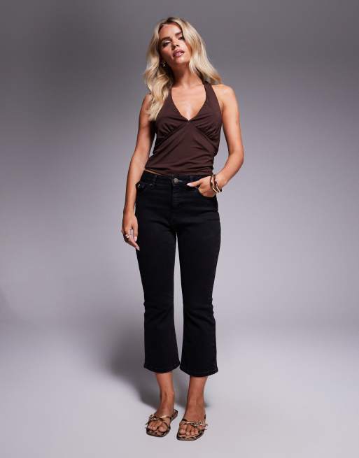 River Island Petite cropped flared jeans in black