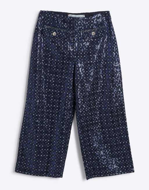 River Island Petite denim sequin wide leg crop jeans in denim - dark