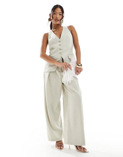 River Island Petite fitted longline waistcoat in light green
