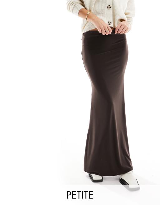 River Island Petite mermaid hem midi skirt in dark brown