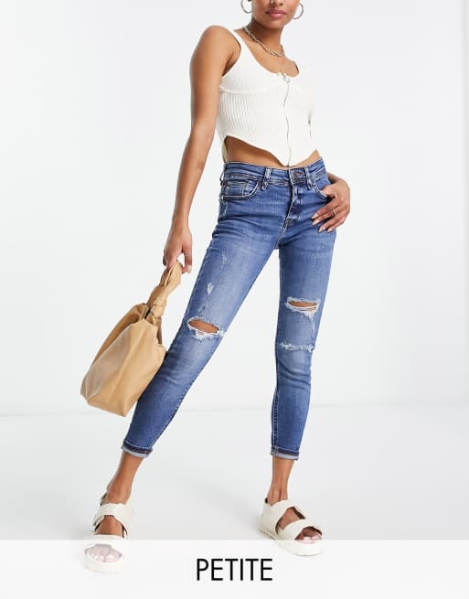 River Island Petite mid rise skinny jean with rips in dark blue