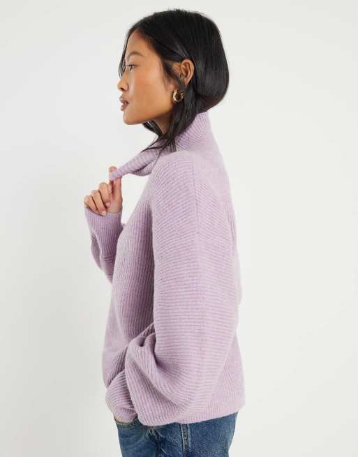 River Island Petite Petite purple knitted funnel neck jumper in pink - medium