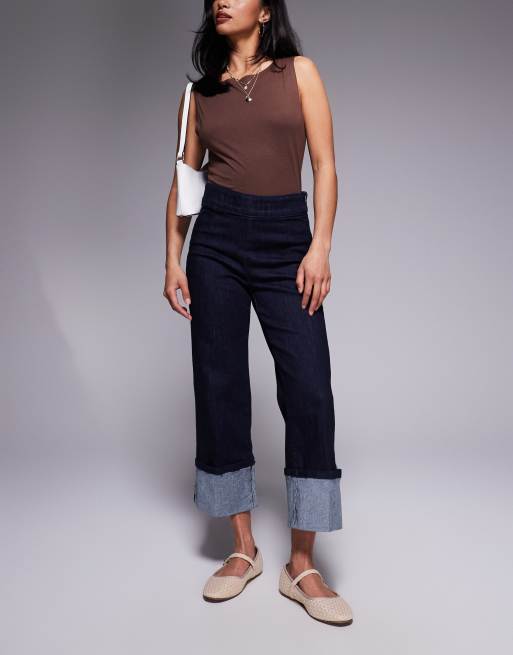 River Island Petite slim turn up jeans in darkwash blue