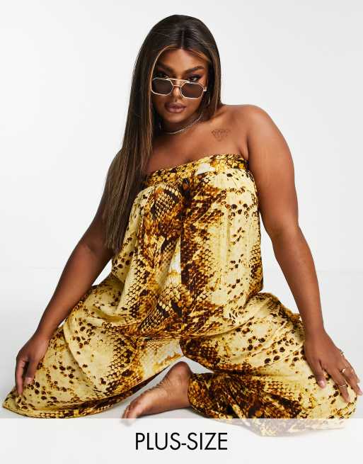 River Island Plus bandeau tie back jumpsuit in snake print
