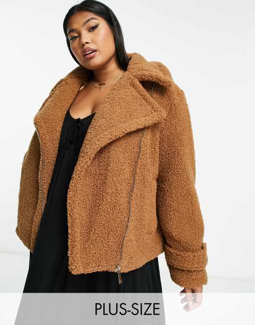 River Island Plus borg biker jacket in light brown