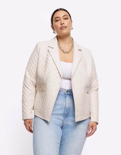 River Island Plus faux leather quilted blazer in stone - light