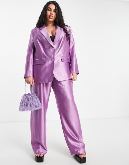 River Island Plus metallic oversized dad blazer & trouser co-ord in purple