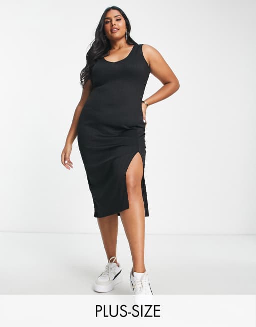 River Island Plus v neck midi dress in black