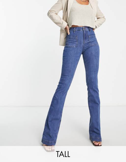 River Island Tall pocket front flared jeans in mid authentic blue
