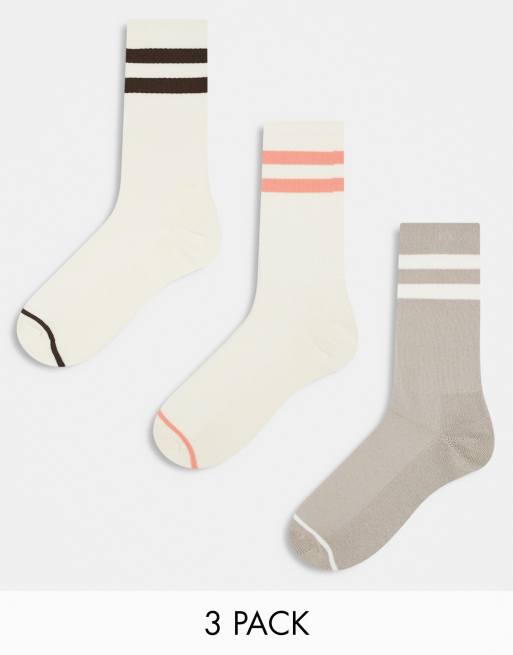 River Island 3 pack double stripe tube socks in medium stone
