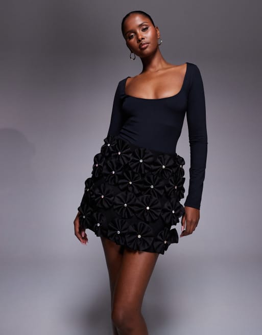 River Island 3D flower A line mini skirt in black