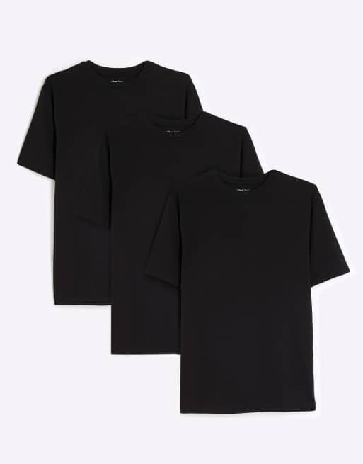 River Island 3pk muscle fit short sleeve t-shirt in black