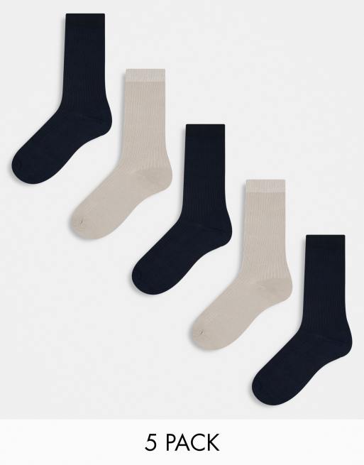 River Island 5 pack ribbed ankle socks in brown