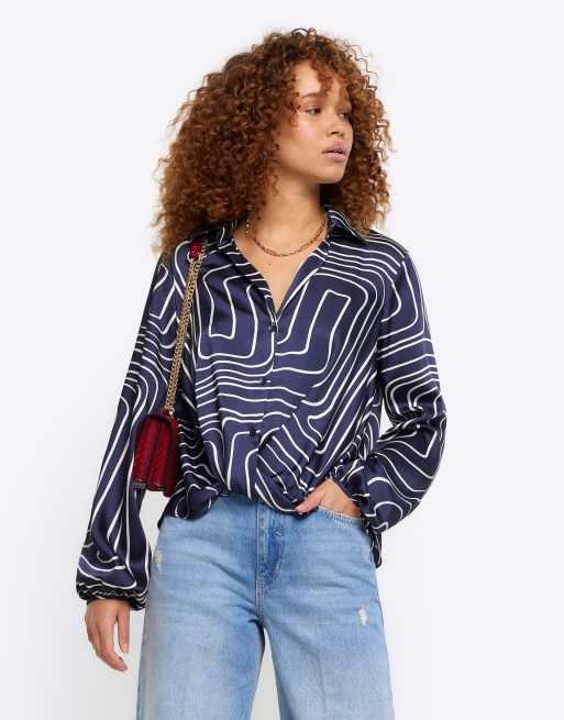 River Island Abstract wrap shirt in navy
