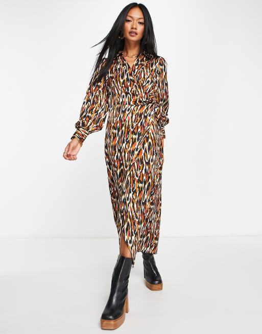River Island animal print wrap midi dress in brown