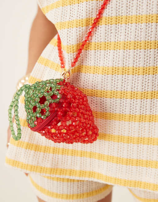 River Island beaded strawberry bag in red