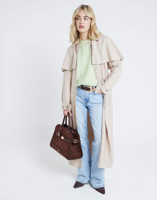 River Island Belted longline cape trench coat in beige - light