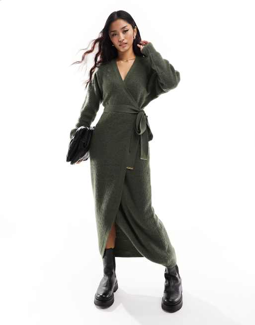 River Island belted midi dress in khaki