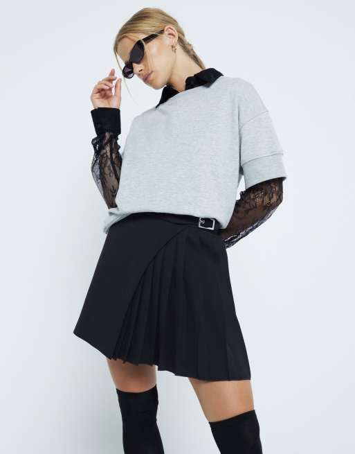 River Island belted pleated mini skirt in black