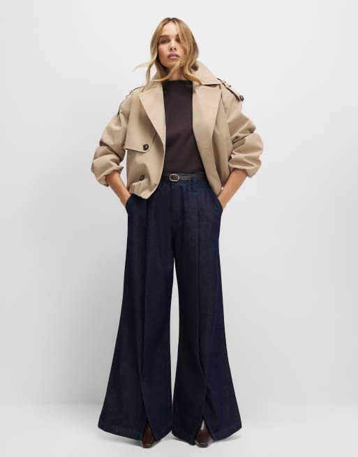 River Island Belted split hem wide leg jeans in denim - dark