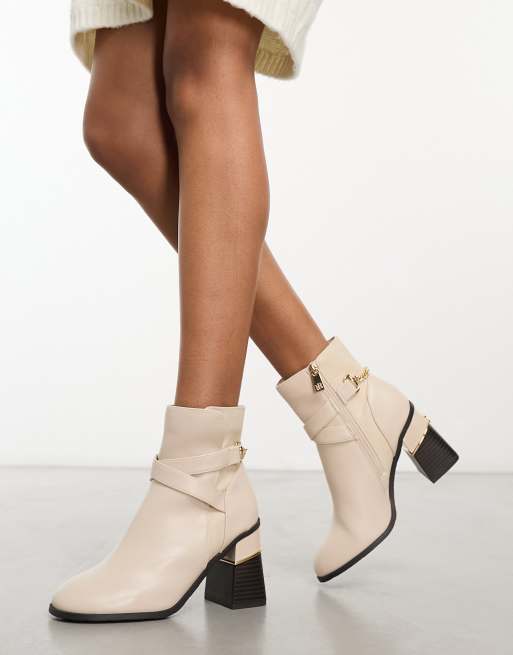 River Island Block Heeled Boot in Cream